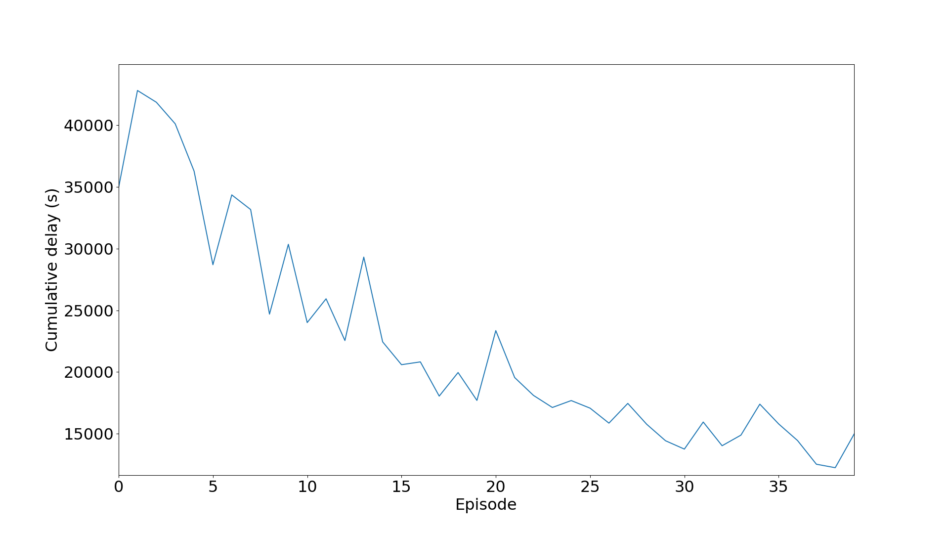 奖励值的计算仅在每个动作执行后计算 ,也就是在每10或14秒一次相位变更时候。只累积负奖励 (惩罚)值,目标为最小化负奖励,使其逼近0。